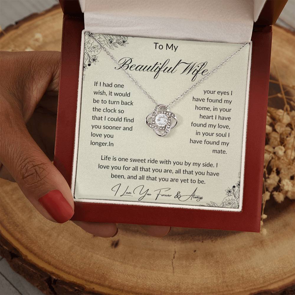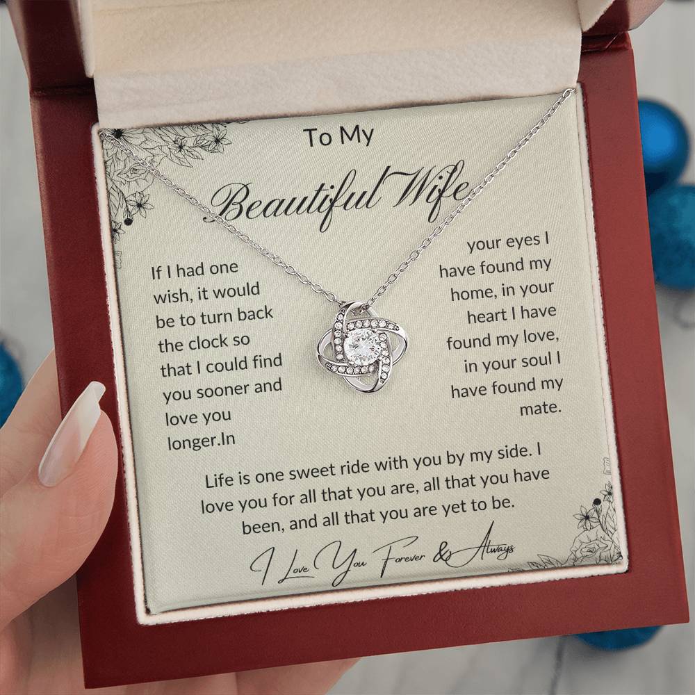 Imagine her reaction receiving this beautiful Love Knot Necklace. Representing an unbreakable bond between two souls, this piece features a beautiful pendant embellished with premium cubic zirconia crystals. Surprise your loved one with this gorgeous gift today!